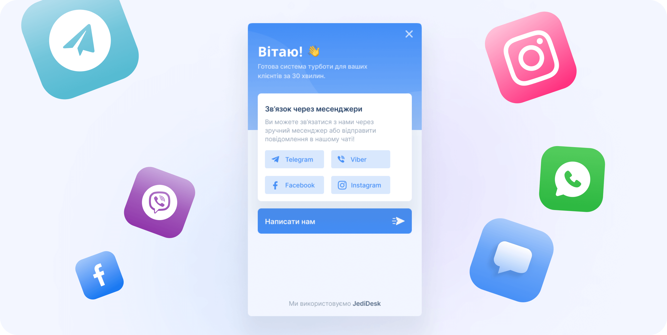 - Повідомлення з різних каналів потрапляють до єдиного інтерфейсу та бази даних, завдяки чому менеджери можуть з ними працювати без перемикання між сервісами.